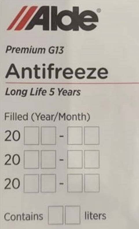Alde Antifreeze-tarra