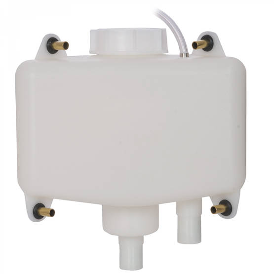 Nurkkaan asennettava paisunta-astia, muovia, kolmion muotoinen. Neljä seinäkiinnikettä. Leveys 210 mm, korkeus 231 mm, syvyys 116 mm, tilavuus 2l.