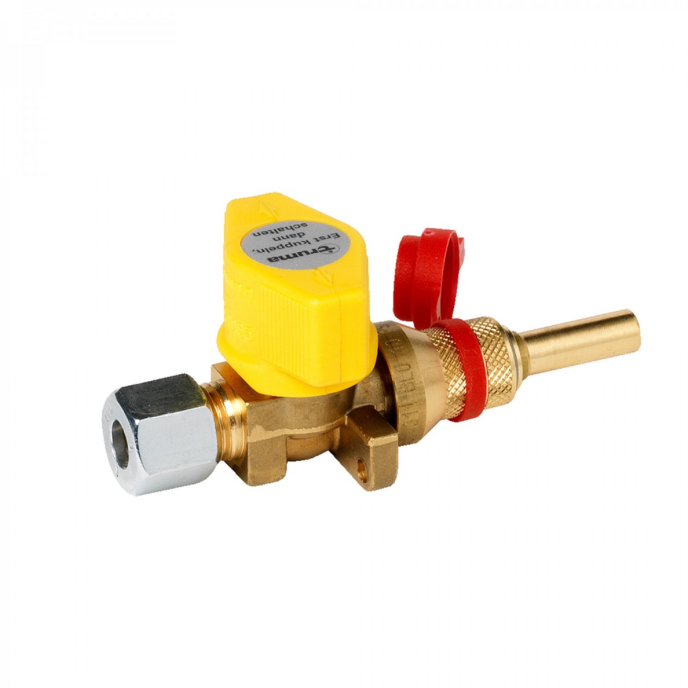 Sulkuventtiili messinkiä pikaliittimellä. Turvaliitin, jossa nippa voidaan irrottaa vain hanan ollessa kiinni. Ø 8 mm putkiliitäntä - Ø 8 mm putkisuutin.