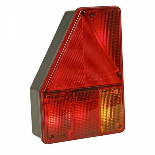 SisältääTaka, jarru, suunta ja sumuvalo Kolmioheijastin Mitat 180x255x83 E9 1057 Hyväksyntä Ei polttimoita Läpiviennillä.