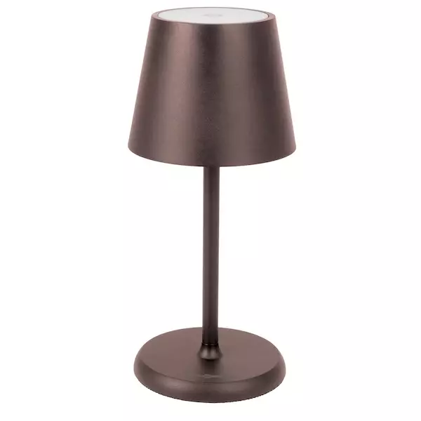 Ladattava pöytälyhty ulkokäyttöön. Valaisimessa on moderni muotoilu ja tyylikäs ulkonäkö. Miellyttävä lämpimän valkoinen LED-valaistus. Varustettu valon voimakkuuden säädöllä ja tyylikkäällä metallisella varjostimella. Integroitu litiumioniakku voidaan ladata milloin tahansa mukana toimitetulla USB-kaapelilla.