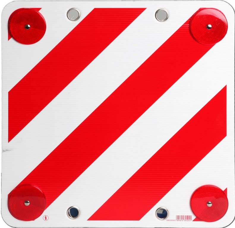Zebra PL on muovinen varoituskyltti ylipitkille kuormille. Kyltissä on neljä heijastinta, jokaisessa kulmassa.