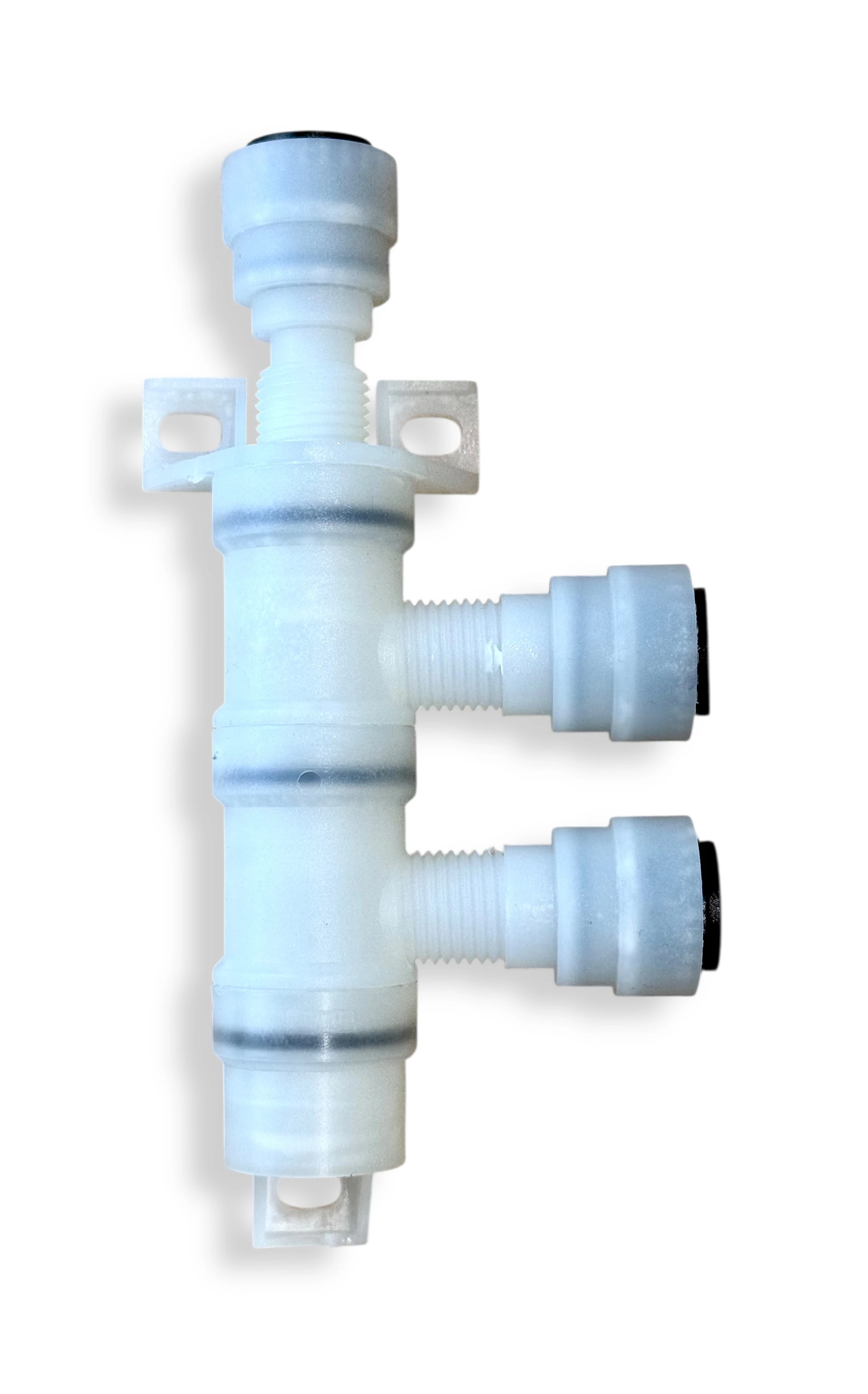 Vesijärjestelmän kaksiosainen jakokappale 12 mm John Guest kovaputkiliitännöillä.