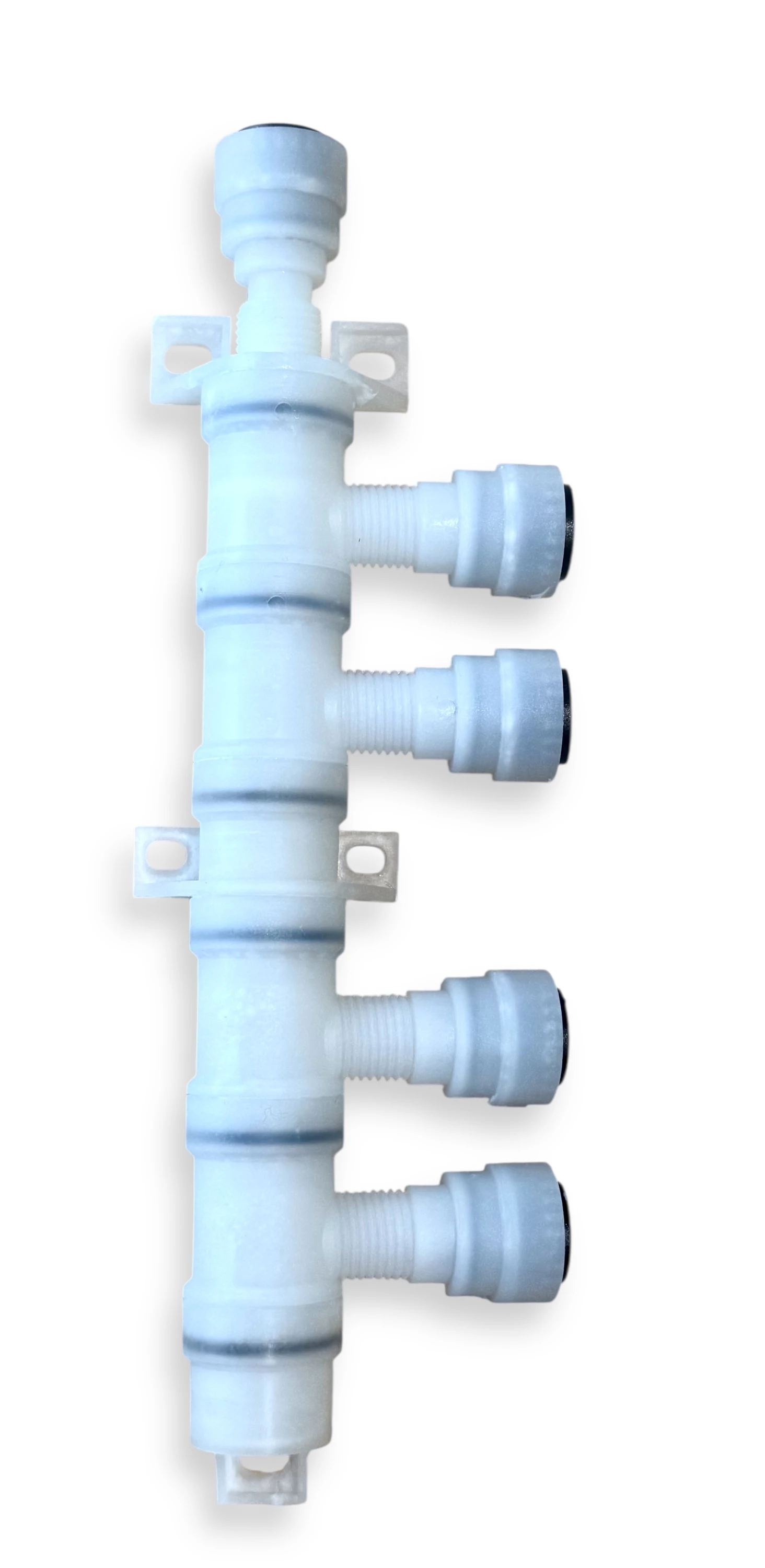Vesijärjestelmän neliosainen jakokappale 12 mm John Guest kovaputkiliitännöillä.