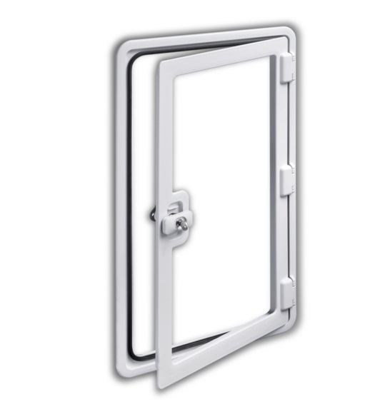 Dometic SK 4. Huoltoluukku, 700 x 405 mm. Tämä siisti, säänkestävästä ASA-muovista valmistettu huoltoluukku voidaan asentaa vaaka- tai pystysuoraan, minkä lisäksi se on helppo kiinnittää ajoneuvon seinäaukkoon ilman ruuveja.