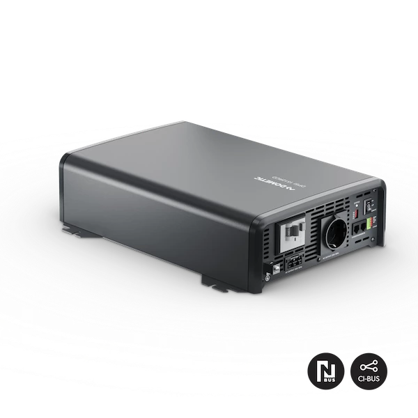 Tämä 1500 W siniaaltomuunnin on varustettu integroidulla vikavirtasuojalla (RCD) turvallista asennusta varten. Kompaktia laitetta voidaan ohjata kätevästi Dometic TD283 -näytön, CI-BUS-järjestelmän tai älypuhelimen kautta. Se muuntaa 12 V akun virran puhtaaksi 230 V lähtöjännitteeksi, aivan kuten kotitalouden pistorasiassa. Matalaprofiilisen rakenteensa ansiosta se vie vain vähän tilaa.