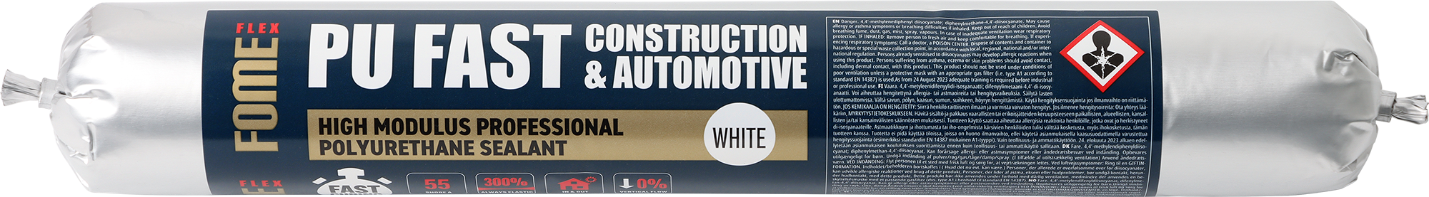 Fome Flex Pu Fast Construction&Automotive HM. On nopeasti kovettua, korkea moduulinen, vahva tartuntakyky, polyuretaanipohjainen liima- ja tiivistemassa. Käyttö: autojen, peltisaumojen tiivistys. Tiivistys vettä, ilmaa, kaasua ja pölyä vastaan