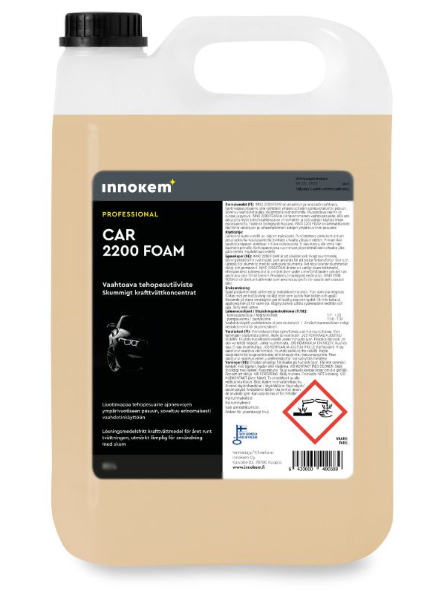 INNOKEM 2200 FOAM Tehopesutiiviste on ammattilaisten käyttämä vahattujen ja vahaamattomien ajoneuvojen ympärivuotinen pesuaine. Se on alkalinen, kustannustehokas ja runsaasti vaahtoava, liuotinvapaa tuote.