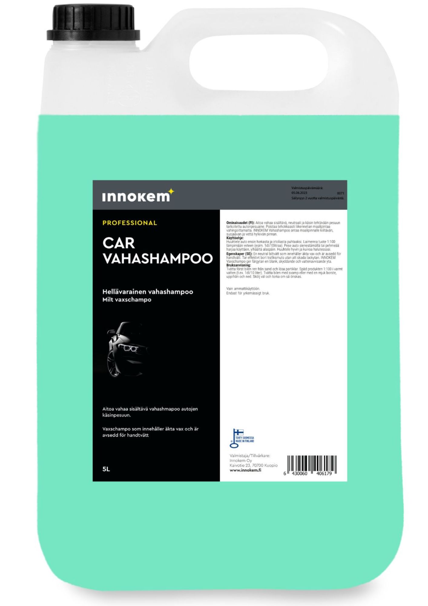 Käyttöohje: Huuhtele auto ensin hiekasta ja irtoliasta puhtaaksi. Laimenna tuote 1:100 lämpimään veteen (esim. 1dl/10litraa).Pese auto sienestämällä tai pehmeää harjaa käyttäen ylhäältä alaspäin. Huuhtele hyvin ja kuivaa halutessasi.