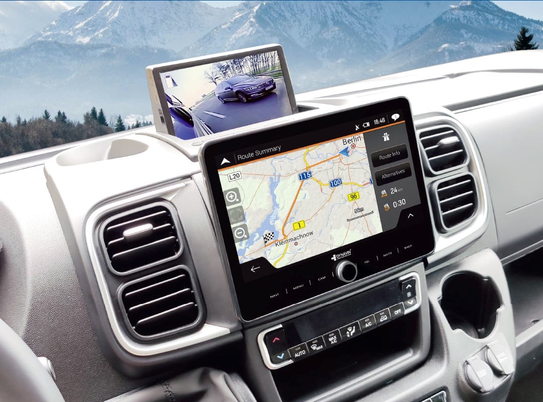 - Peruutuskameravalmius: Yhteensopiva tehdasasennettujen peruutuskameroiden kanssa käyttämällä Dynavision kamera-adapteria. D8-DCX2022 Plus on myös yhteensopiva myös Fiat Ducaton 2006-2021, Citroën Jumperin ja Peugeot Boxerin kanssa käyttämällä adapteria DVN-APTDC- Integroitu GPS-navigointi (3 vuoden ilmaiset karttapäivitykset), 3D-näkymä, online-TMC* ja TTS