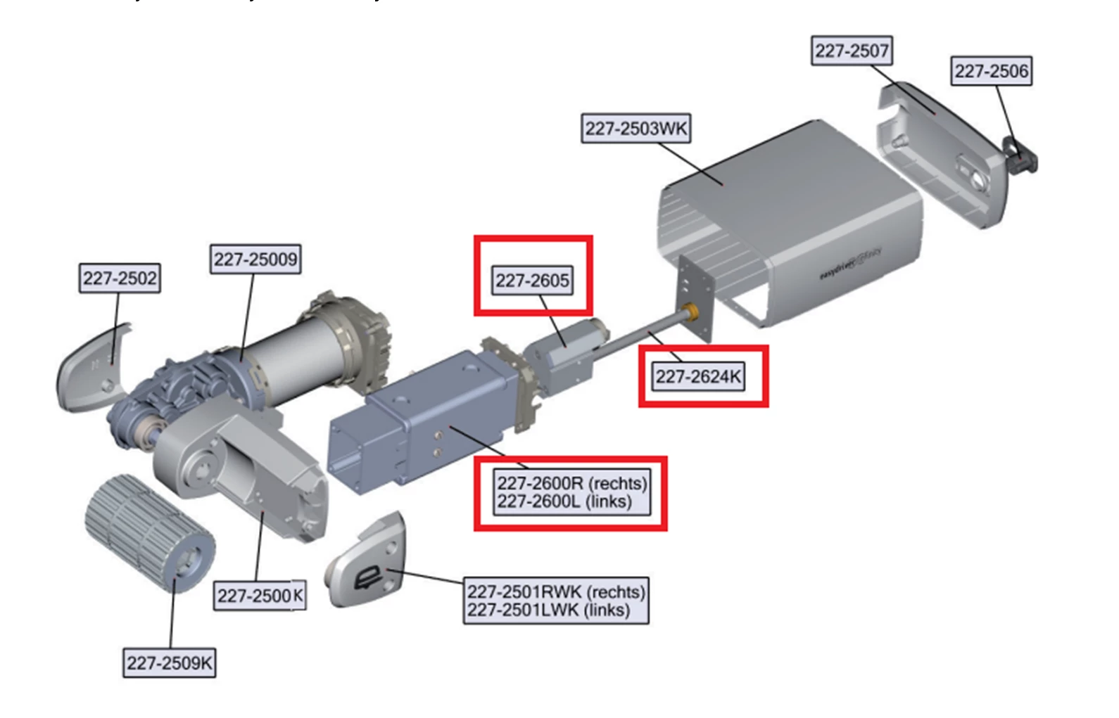 Osa 227-2600L Sisältää osat 227-2605, 227-2624K
