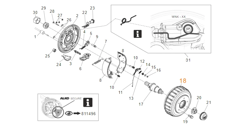 Säätövipu vasen AL-KO automaatti jarruille 2361
