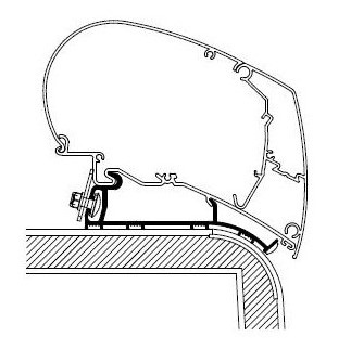 Sopii Nova matkailuvaunuihin ja moniin matkailuautoihin. Kattomarkiisin adapteri. Hymer 2013 Nova Roof Adapter - 5.00m