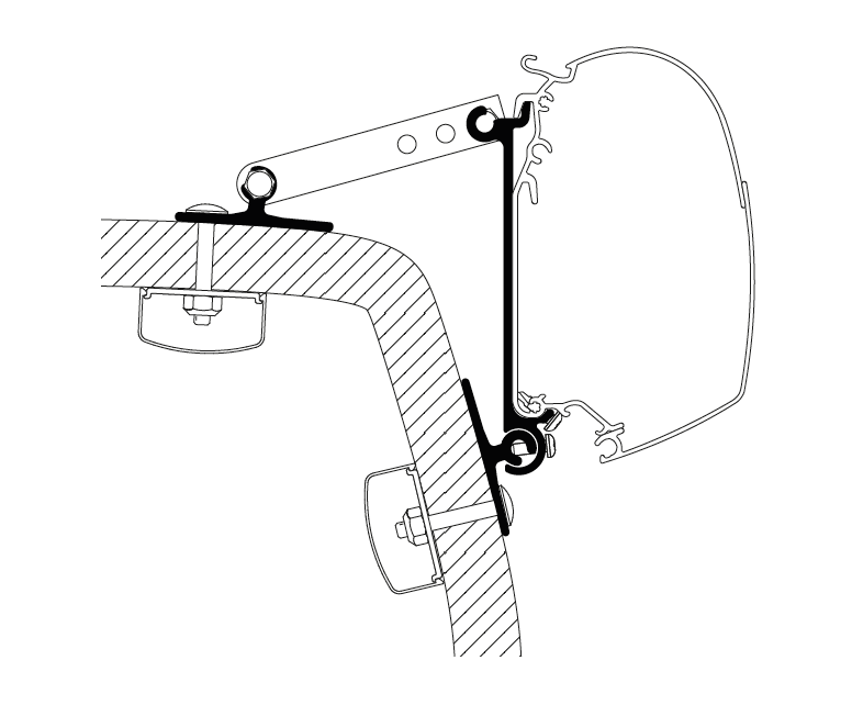 Seinämarkiisin adapteri, joka sopii haastavan muotoisiin seiniin. Thule Omnistor: 5200 / 4200. Sarja: 2 x 8 cm + 1 x 4 cm