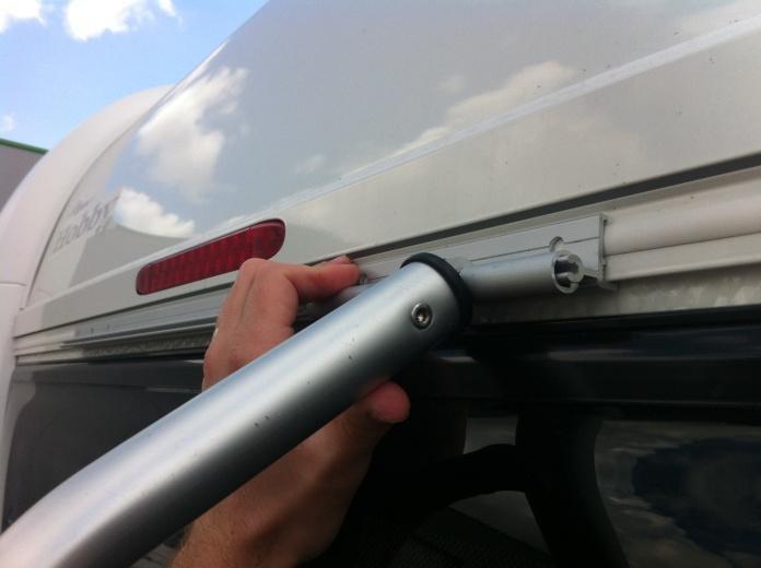 Yläkiinnityksen sovite Thule Sport G2 Hobby / W150 telineen 307128 kiinnittämiseen Hobby 2015- markiisilistaan.