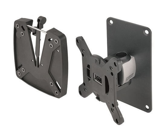 QuickRelease kiinnitetään näyttöön neljällä ruuvilla; käytännöllisen yksivipuefektin ansiosta näyttö voidaan kiinnittää tukielementtiin ilman ruuveja Kantavuus: 10 kg