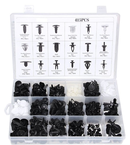 Arctic Auto 415 osaa verhoilukiinnikkeet Lajitelma muovisia kiinnikkeitä 18 erilaista kiinnikettä, yhteensä 415 osaa. Sisältää mm. erilaisia verhoilunkiinnikkeitä ja vastinkappaleella... Lue lisää